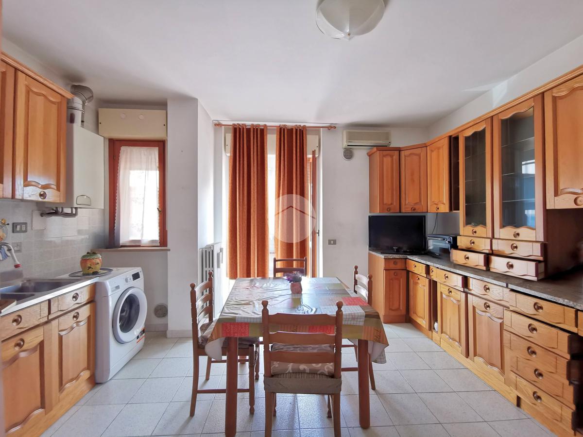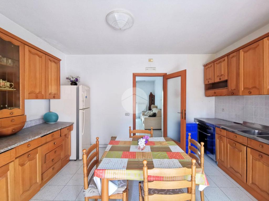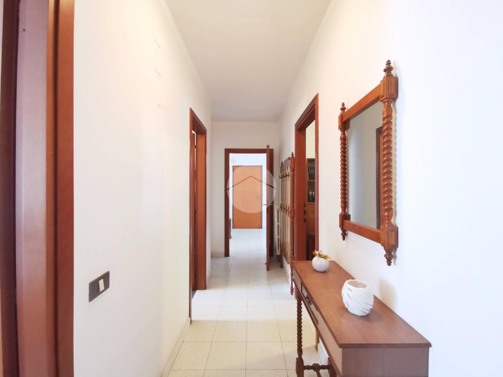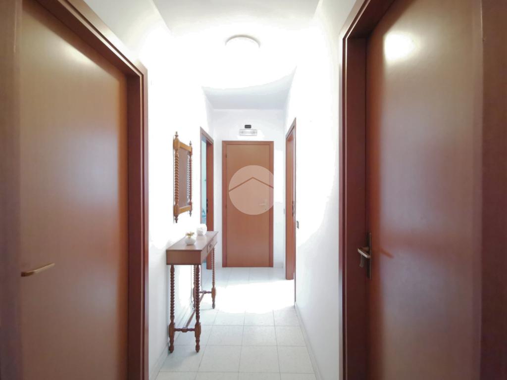 Le porte interne sono in legno, mentre quelle del corridoio e della cucina presentano inserti in vetro che donano ulteriore luminosità agli ambienti.