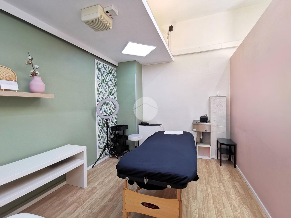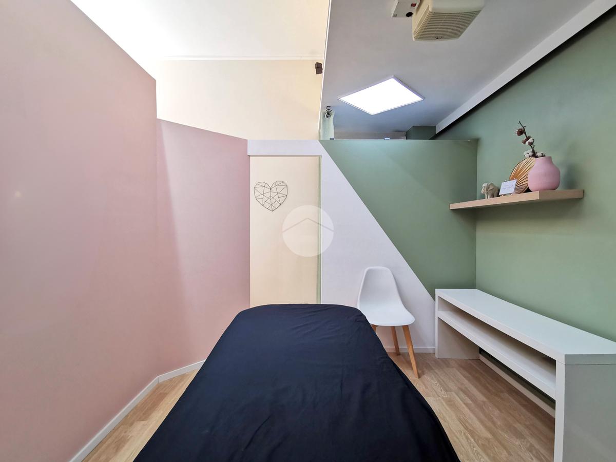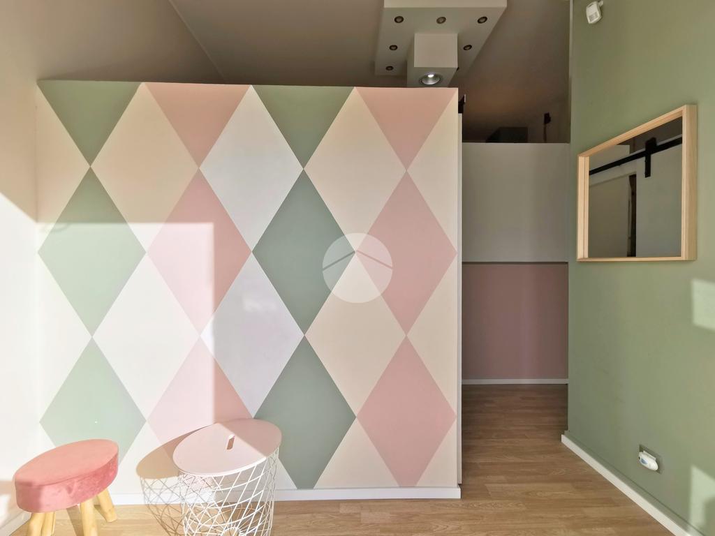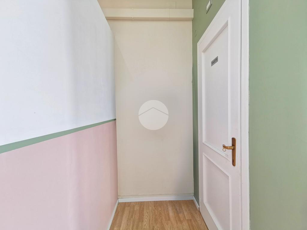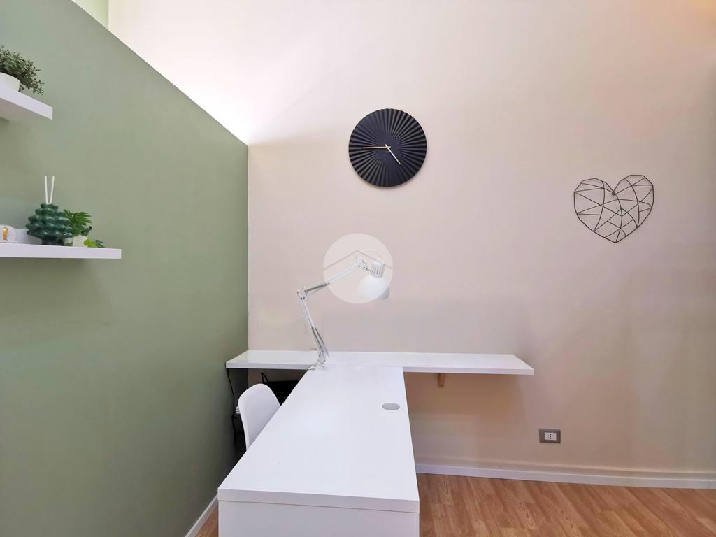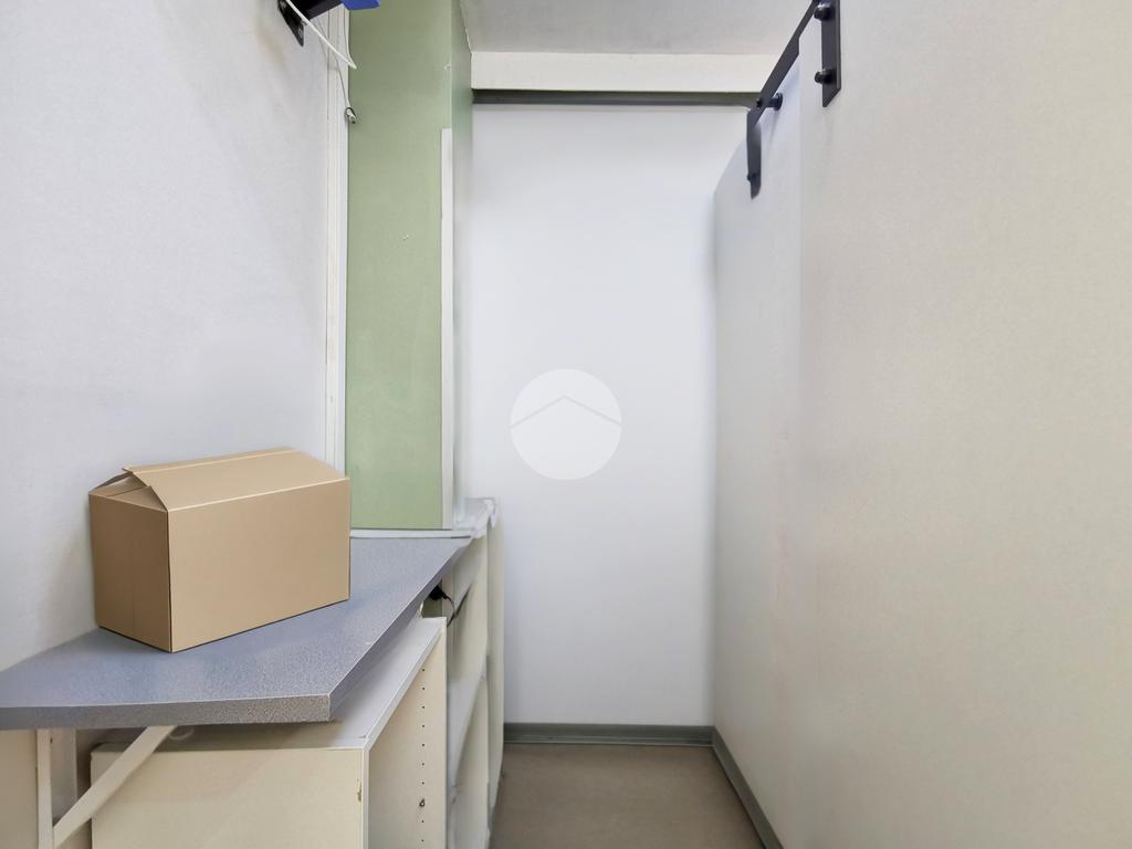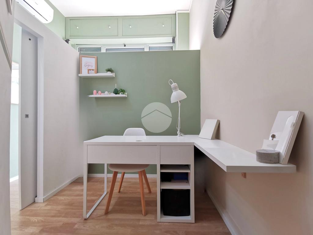 Completano una soluzione curata e moderna: la pavimentazione in laminato effetto parquet, gli abbassamenti con faretti, lo scaldabagno, la serranda motorizzata e l’aspiratore presente nel secondo ambiente.