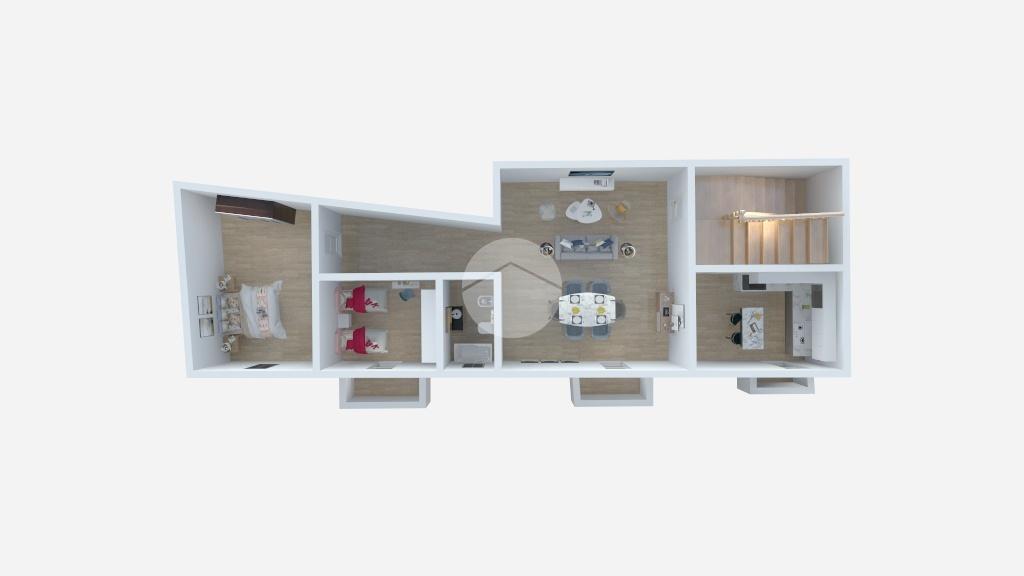 Soluzione su più livelli composta: a piano terra da ingresso, due camere di cui una doppia, un bagno funzionale, un cucinino ed un adiacente ripostiglio.