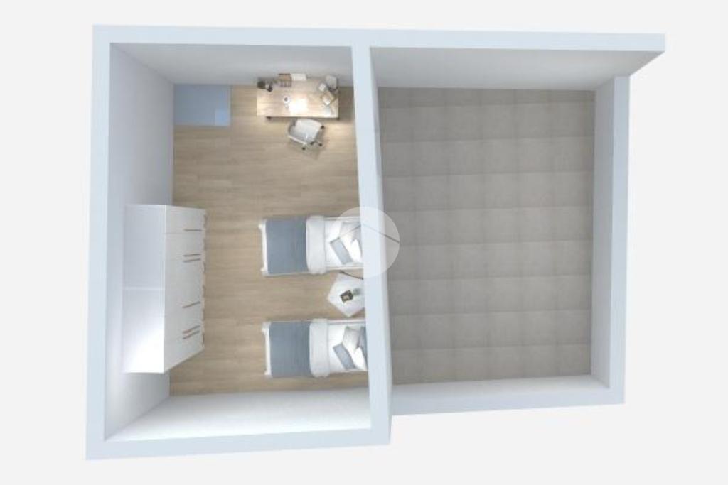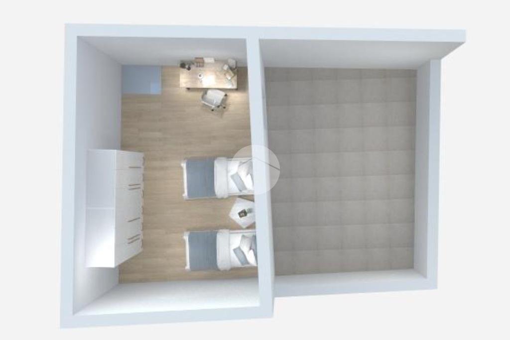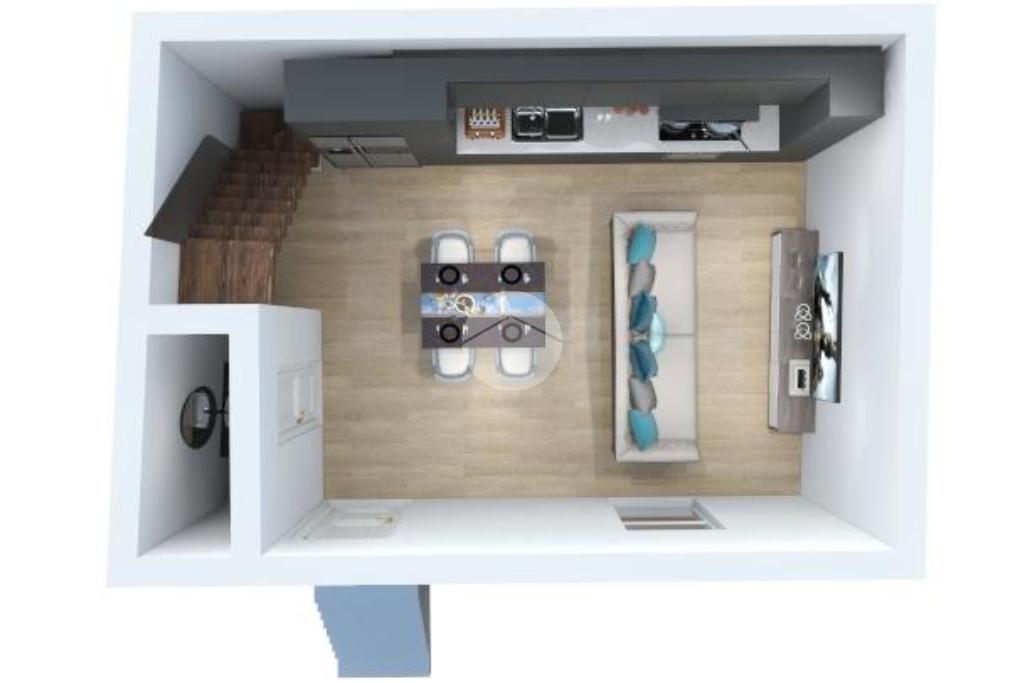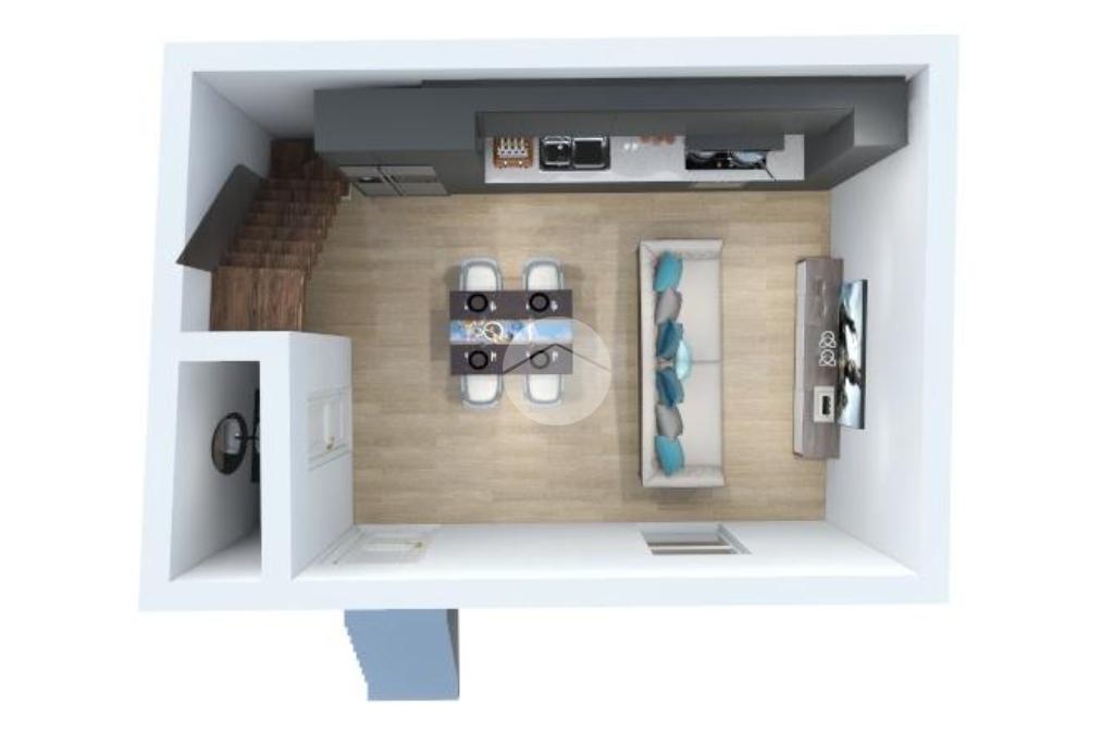 Al piano terra troviamo un accogliente soggiorno con angolo cottura e bagno, ideale come zona giorno.