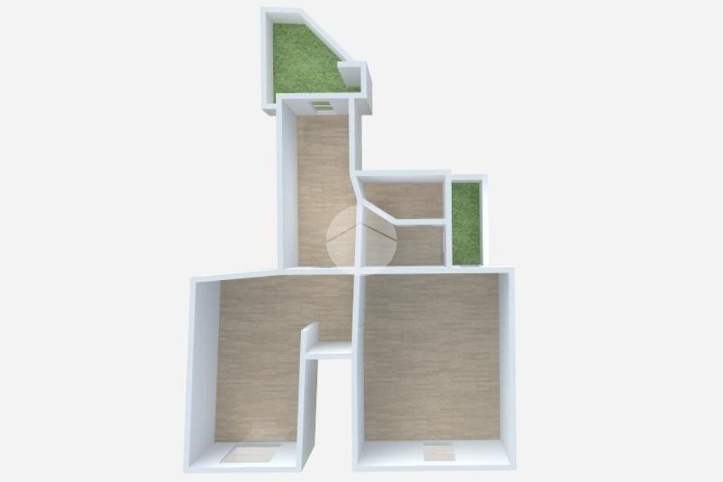 L’immobile è dotato di doppio ingresso e si compone di due vani frontali ampi e luminosi, un terzo vano leggermente più piccolo, un cucinino eD un bagno completo di doccia.